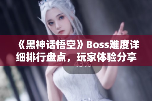 《黑神话:悟空》是一款备受期待的动作角色扮演游戏,其独特的中国文化背景和丰富的剧情设置都吸引了大量玩家的关注。在这款游戏中,Boss战是玩家们体验挑战和乐趣的关键部分。本文将对《黑神话:悟空》中的Boss难度进行详细排行,并分享一些玩家的体验。通过这些分享,我们可以更深入地了解每个Boss的挑战性和玩家的面对策略。