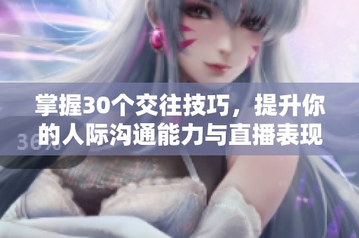 30个交往技巧视频直播为用户提供了实时学习的机会。在这些直播中,专业人士分享了交往中的一些有效窍门与技巧。通过视频,参与者可以更好地理解和学习实际操作,增强自己的社交能力,有助于在生活和工作中更好地与他人沟通。
