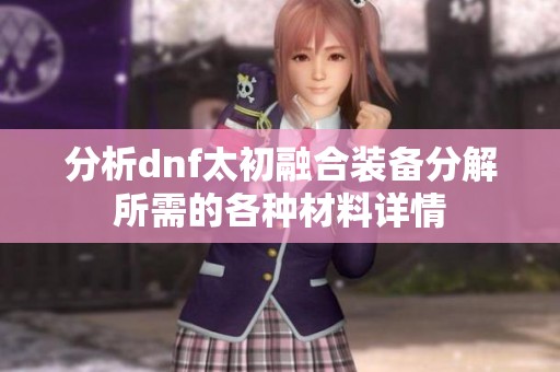 《地下城与勇士》(DNF)中,太初融合装备是一种高端装备,其独特的属性和效果使得玩家在游戏中获得更强的战斗力。要打造或分解这些装备,玩家需要准备各种稀缺的材料。本文将详细分析太初融合装备分解所需的各种材料,帮助玩家更好地理解和获取这些资源。